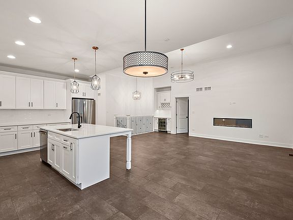 RANCH TOWNHOME ready for immediate delivery!! Middle unit makes this an affordable luxury ranch townhome built by one of Lockport's finest builders. High end, maintenance free living. Brick and stone masonry exterior, professional landscaping and concrete drive. Gorgeous formal dining room with 12 ft. ceiling, crown molding, wainscoting, chandelier, recessed lighting and sconces! Expansive entertaining area with family room featuring stacked windows, a lit dry bar with beverage center and extra wide electric landscape fireplace heater. Tons of bright white cabinetry and quartz countertops with complimenting tile backsplash and under cabinet lighting in the kitchen. Upgraded stainless appliances and island with seating. Still plenty of open space for table dining. Step out to 10x12 maintenance free deck, 8x8 concrete grill pad with gas line and courtyard of green space. Open finished staircase to 9 ft deep basement, ready for storage or expanded living space if needed with roughed in plumbing. Primary bedroom with decorative ceiling and en suite including oversized shower, comfort height private commode, linen closet and adjacent dual closet, both with built-in organizers. Attached 2-car garage with hot/cold water access. Close proximity to downtown Lockport's shopping, dining and I-355. Come see what makes us unique. $438,985 as shown.