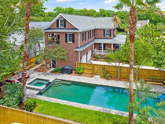 1341 Langford has all the character and charm of a historic Charleston home, in the highly sought-after neighborhood of ShellPoint. This extraordinary custom home embodies a rare combination of warmth, simplicity, and sophistication. Tucked away in a quiet community lined with Oak trees, green spaces, and a beautiful lake in the heart of Mt. Pleasant. A quiet and cozy community that feels far from the hustle and bustle. This home captures the essence of southern charm with its craftmanship and attention to detail that defines every corner of this exquisite home. Stretching across two sides of the home's exterior, the gorgeous columned wrap around porch provides flexibility for a comfortable spot to relax or space for outdoor living and dining.This stunning home features five bedrooms and 3.5 bathrooms with antique reclaimed heart of pine flooring, beautiful triple crown molding and trim, custom wainscotting, five paneled oak doors, a grand fireplace, 9 ft' ceilings and elegant Federal-style architecture. The custom carpentry wood built-ins and coffered ceilings make the living room so warm and elegant. The detail and craftmanship can be seen in the bookshelves, ceiling trim, and along the walls. You'll find modern conveniences that make this home turnkey. The spacious, luxury kitchen with top-notch appliances has a large center island, granite counter tops, custom cabinetry, Wolf double ovens and gas burner stove, Sub-Zero fridge, Sub-Zero Wine fridge, Miele dishwasher and microwave, two Shaw porcelain sinks, tempered glass-fronted cabinets, and a generous sized pantry. The kitchen design provides a stylish functional space in the heart of the home that makes it easy to entertain in the eat-in kitchen area or the formal dining room. The kitchen and dining room have great space for casual family dinners or larger social gatherings. Overflow guests and family can relax in the front living room/sitting room. On the second floor, the Master bedroom is filled with natural light and offers an ensuite bathroom that feels like a getaway spa. The master bathrooms has dual pedestal vanity sinks, a claw foot tub and travertine tiled walk-in shower with double rain showerheads. The master walk in closet conveniently leads to the laundry room. There are two more spacious bedrooms with adjoining jack & jill bathroom. The bathroom has marble flooring, pedestal sink, and marble tiled shower. The fourth bedroom is conveniently located near the second-floor loft area that provides extra space to lounge or retreat. No need to go downstairs for anything. There is a full bathroom and small kitchenette including a Sub-Zero fridge, sink, and a Fisher Paykel dishwasher. Perfect space for guests or family. Adjoining is a second floor Piazza/Balcony that offers privacy and seclusion tucked in the trees overlooking the backyard pool. Have a night cap or some quiet time before retreating to the bedroom. Extra room abounds as you enter the third floor. These three additional rooms are flex spaces that can be used for a playroom, office, bedroom, gym, art studio, and/or EXTRA STORAGE! The fifth bedroom is private and a great space for extra guests. The layout of the third-floor bedroom also allows space to add an extra bathroom. The living space continues to the outside backyard with a large 45-foot saltwater swimming pool and hot tub spa. This area allows for outdoor living, perfect for hosting guests or simply relaxing while taking in the warm Coastal breezes. The paved patio space wraps around the entire pool with an area for relaxing and outdoor living. The back door entrance allows you closer access to the enormous two car garage with tons of room for storage. The entire home has in-ceiling surround sound system throughout & also the outside entertainment areas. The yard has a 6-zone irrigation system, landscape lighting, 2 underground propane tanks, 2 HVAC units and a Vanguard Monobloc Manifold plumbing system. The spiral staircase is built for an elevator shaft that you can build up to the second floor. The Shellpoint community offers walking/jogging trails, access to weekly Food Truck appearances, golf cart paths that can take you to Shem Creek, and proximity to some of the best schools in Mt. Pleasant. Don't miss this opportunity to live in the middle of it all in this one-of-a-kind home, both inside and out.