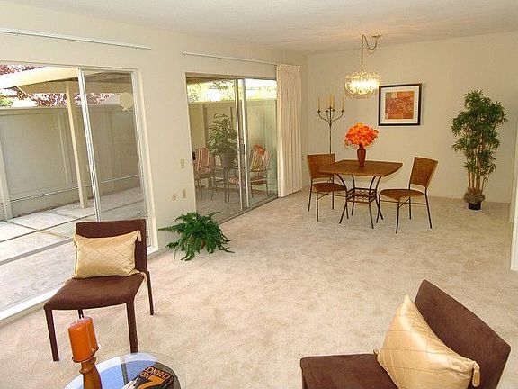 New carpet and fresh paint enhance this attractive Yosemite model situated in a great location in the gated, active adult community of Rossmoor.