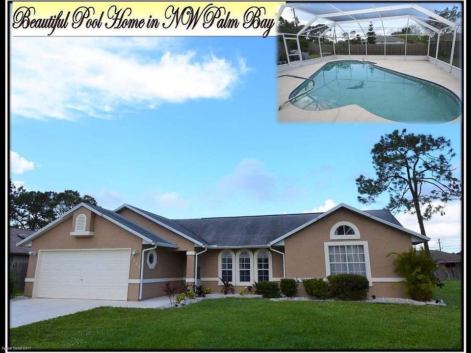 Dee Hinkle, Realtor, Waterman Real Estate...Presents: Beautifully maintained 3 bedroom, 2 bath, 2 car garage, split plan, pool home in convenient Northwest Palm Bay. Spacious floor plan, living room, dining room, family room with wood burning fireplace, vaulted ceilings, plant shelves, skylights, indoor laundry, city water and septic. Master offers spacious bedroom with vaulted ceiling and decorative plant ledges. In the master bath enjoy a soaking tub, walk in shower & designer paint color. Beautiful Sparkling 17 x 30 Pool with large screened patio and brand new screen awaits for outdoor entertaining . The Kitchen cabinets have been refaced, stainless steel appliances, paint inside and out, and landscaping all 2016. Roof 2004, A/C 2009, Termite Bond, Septic Pumped 2016, Pool Pump Motor 2015. THIS HOME IS MOVE IN READY! DON'T MISS IT!