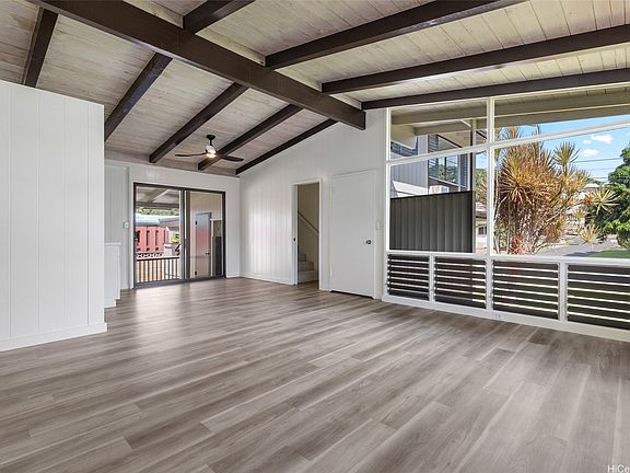 Location, location, location - flat, flat, flat. Highly desirable Moanalua Gardens 4 bedroom, 2.5 bath home offers both comfort and convenience. Situated on a level, beautifully manicured and fully fenced yard, this property provides ample space to play, entertain, expand or simply relax and enjoy. Conveniently located near Moanalua Elementary and Intermediate schools. A LARGE storage room next to the garage adds valuable flexibility - perfect for tools, hobbies or extra space. Looking for income opportunity? Separate the upstairs 1 bedroom, 1 bath with living area - your choice. Home is move-in ready! Renovations include: exterior and interior paint, new luxury vinyl tile (LVT) flooring downstairs, new carpet upstairs, new countertops at full and half bath downstairs, new countertop at upstairs kitchenette, new door knobs, new light fixtures (at bedrooms, bath, hallway), new ceiling fan at dining room, new a/c at upstairs bedroom and many more.