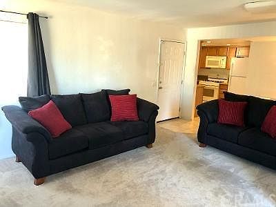 Very nice top level one bedroom one bath unit. This is a gated community near UCR and downtown Riverside. Nice spacious family room area with large balcony. Kitchen features granite counters, stainless steel sink, stove, microwave, fridge and dishwasher. Central air conditioning and heat. 1 car garage. Pool, playground and outdoor bbq area. Dog friendly. Great community.