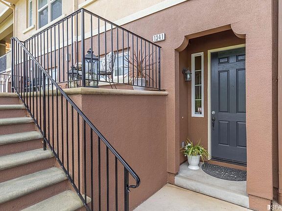 This stunning multi-level townhouse has the best of everything.Peaceful complex is a 5-minute walk to BART & 20 minutes to downtown SF. Steps to Trader Joes, Starbucks & Costco. This home features high ceilings & natural light has been lovingly updated: open gourmet kitchen with stainless appliances,quartz countertops with center island, living area with gas fireplace & new wood flooring. Upper level w/ 2 spacious bedrooms, master suite with spa like bthrm including jetted tub and stall shower. Additional en suite bdrm w/ full bthrm. Additional features inc:recessed lighting, sound proof windows, laundry area w/ new washer/dryer, half bath on main level, and attached garage w/ area perfect for office or extra storage space. Built in 2004.