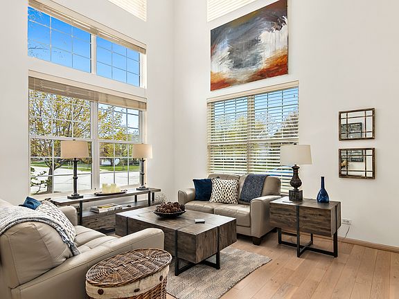 This immaculate and beautifully kept home is situated on a quiet street in Cambria Subdivision, backing to walking trails and an 18-acre dog park! With a 2-story foyer and vaulted ceilings, welcome to the light and bright open-concept floor plan everyone is looking for! The owners have made wonderful updates to the home including fresh paint, beautiful light fixtures, and on-trend, light-colored wide plank hardwood floors throughout the main level. The kitchen updates are tasteful and modern, with new stainless steel appliances, quartz and granite countertops, backsplash, and under mount sink. Nothing to do but move in and get settled! Enjoy relaxing in the evening in front of the gas log fireplace while admiring the gorgeous landscape outdoors. The main level also features a first-floor office that can be utilized as a bedroom or in-law quarters thanks to the full bath next door. The laundry is located in the mudroom off the garage door. Three bedrooms upstairs and a loft that could be converted into an additional bedroom if desired. With hardwood floors, it's currently used as an office and would make a great play space or additional family room area. The primary bedroom is huge and has great closet space, the en-suite features dual vanities and a jetted tub. One of the two additional bedrooms has a direct entrance into the hall bath. The unfinished basement has high ceilings and is ready for your finishing touches, the plumbing is roughed in for a bath. 3-Car Garage. Tranquil and private setting with a lovely patio and pergola, & professionally designed gardens, easy to maintain with a sprinkler system. Sunrun solar panels are on a 20-year lease. * Updates include Marvin windows and furnace installed in 2011, A/C, irrigation system'12, Water heater '13, roof, siding, gutters, driveway '15, ejector pit '17. Current owners painted the entire interior (& removed wallpaper), added hardwood floors to the kitchen, family room, first-floor office/bedroom, and loft, and updated the kitchen with new stainless steel appliances, granite/quartz countertops, backsplash, under mount sink, new gas log fireplace insert. * This home is simply perfection from inside and out! Cary Schools! Fun community, down the street from Kaper Park and splash pad, a short drive to brand new Sunburst Bay Aquatic Center. The walking/bike trail runs behind this property and connects it to nearby community garden plots and and dog park! Minutes away from delicious restaurants in downtown Cary, the Metra, and gorgeous parks and trail systems the area is known for. Quick Close Possible!