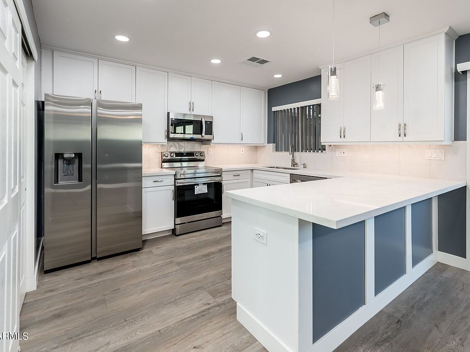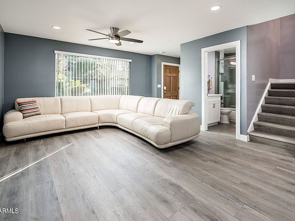 Just like new in a fantastic location!!! A coveted end unit nestled in the quiet community of Eastwood Townhomes this property has been completely remodeled down to the studs! All new plumbing above and below ground, new electrical, new roof, new drywall, new flooring, new cabinets, new stainless steel appliances, new front load washer and dryer! Tastefully finished, this home is light and bright with luxury vinyl plank flooring throughout, two tone trim, 2 bedrooms and 3 full bathrooms plus another flex/office space, large patio with new sail shade cover, exterior storage room plus two covered parking spaces. Easily walkable to lots of shopping and restaurants you will not find a better value in the Valley!