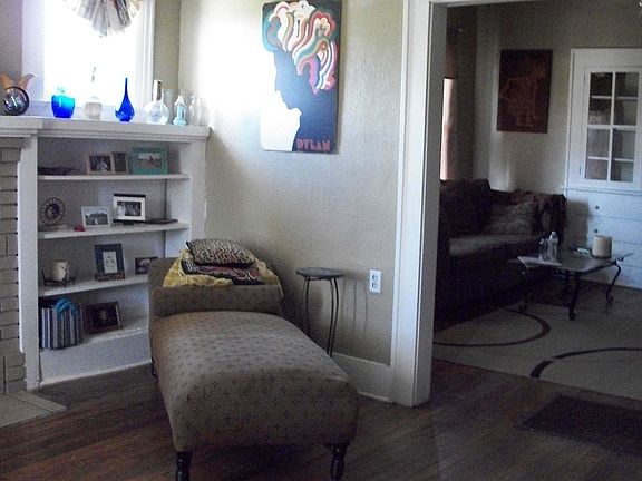 This little bungalow is a block outside of the Brady Heights Historic District. It is in the brand new Emerson Montessori Elementary School district and is in walking distance from the school and its onsite farm and permaculture garden and food forest. The neighborhood was one of the first in Tulsa and is great as are the near by neighbors. The home has hardwood floors throughout, a fireplace, built ins in dining room and living room, central heat, window units for AC ( we got a bid on new central AC that is around $1500.) high ceilings, front porch, walkable neighborhood, tree lined streets, near down town, brand new tile in bathroom, fenced in portion of back yard, small shed, updated plumbing and electric. New roof as of 2007, re peering of north side a few years ago. Very bright and cheery home.