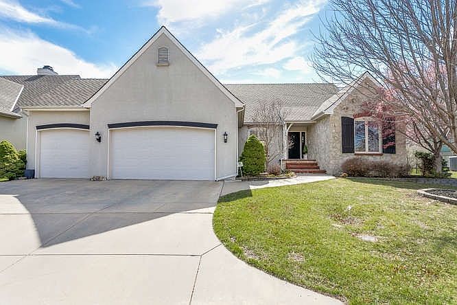 Finally, a patio home with perfect decor, layout, functionality in a beautiful neighborhood. These owners weren't planning on a move when they invested in this home, but their loss is the new owners gain. This home has 3 bedrooms, 3 bathrooms, 3 fireplaces, 3 car attached garage, kitchen with eating area and hearth room, family room with three tvs mounted for watching your favorite shows all at once, a wet bar with a refrigerator, theatre room with leather seating, plus plenty of storage. The kitchen and all three bathrooms have recently been redone. The list of special features in this home include: stainless steel appliances in the kitchen, Bosch dishwasher, Samsung refrigerator, desk in kitchen, granite or quartz countertops in kitchen, bathrooms and bar, crown molding, three fireplaces, ceiling fan, three year old Certainteed Presidential Impact Resistant Class 4, 50-year roof, theatre room in the basement, wet bar in the family room, Andover schools, Wichita taxes. All close to the popular east side shopping and dining. This home is PERFECT, come see for yourself.
