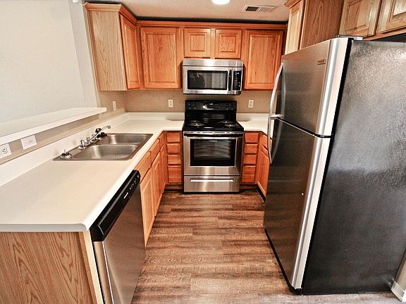 1 A Plan Left till next year & Will go fast. The beautiful town home is 2 bedroom, 2.5 bath with a fireplace. Very quiet community surrounded by the trees. Harbortown Villas is just Minutes to 35 hwy/29/ 169 & 435. Call today for a viewing and to hear about our Specials.com NO APP FEE to pre-qualify A PLAN $1100 *Appliances/Flooring Vary per Units* ( C & B Floor Plans avail w/ 2 car garages avail. ) 12 month