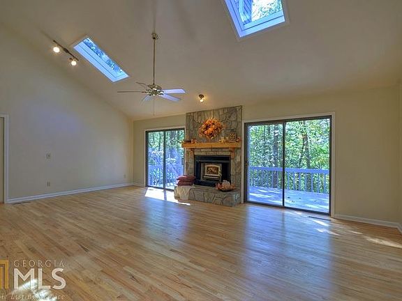 Enjoy the beautiful North Georgia Mountains with this charming ranch home perfectly situated on 3.53 acres; gentle laying lot with all paved roads, easy access and only 4 miles from Downtown Historic Ellijay. Home features one level living with 3BR/2BA, open concept-great room has stone fireplace w/woodstove insert, soaring cathedral ceiling w/skylights (abundant natural light) feels very spacious! Lg master w/private screened porch, double vanity, jetted tub & sep shower. 2 car garage, plus a private home office off the garage. Seller has spared no expense in making this "move in ready"! New interior paint throughout, new flooring in baths & office, new countertops in kitchen & bath, new stove & range hood, new low-E glass in skylights, new well pump.