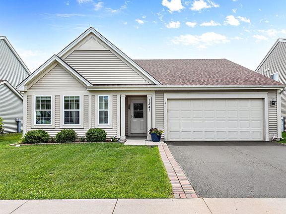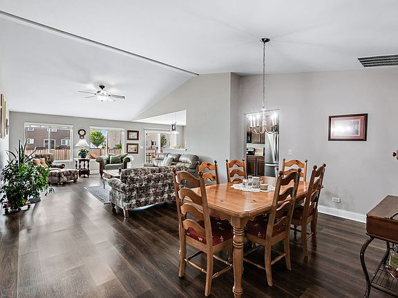 Welcome to your Pingree Grove Paradise on Padre Island Ln! This 3 Bedroom, 2 full bathroom RANCH home in the Cambridge lakes neighborhood offers EVERYTHING you could ask for in a home, open concept, newer construction, stainless steel appliances, and single level living! As you stroll up to the home you are welcomed by a beautifully landscaped yard, brick flanked driveway, and a covered entry! Welcoming you inside of the home is a vaulted ceiling great room flooded with light and views to your brand new patio, and brand new fenced in back yard! You are greeted by 2 spacious bedrooms and a full bathroom near the entrance and the primary suite with his and hers closets, a separate soaking tub/shower and double vanity! As you enter the eat in kitchen you can easily envision having family or friends over enjoying the open space! Just off the kitchen is the laundry room, and 2 car garage! New roof as of July 2023, new hot water heater (2023), new patio/fence (2023), new fridge (2023) and new carpet in the primary bedroom (2023)!!! Cambridge lakes offers a community pool, sports fields, charter school, parks, and so much more! Don't delay! make this your home today!