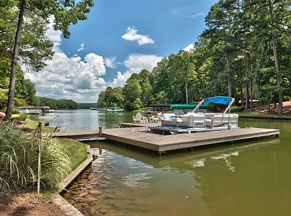 MUST SEE to appreciate, it won't disappoint! RECENT major pruning provides great LAKE views. NEW granite kitchen and baths, ,LAKE VIEWS from eat-in kitchen, NEW gas cook-top, new s/s appliances & sinks, freshly painted. Oversized Laundry room with storage galore. En suite Master enjoys beautiful lake sunrises , guest bedroom w/bath on main.Library & dining rooms view garden, Screened porch, huge decks overlooking lake, hardwood floors, skylights, floor to ceiling windows & vaulted ceiling make it bright & open. UPSTAIRS has loft, 2 large BRs , full bath, craft room, 2nd office, HUGE walk in storage attic. Three car garage w/ sink, workbench, Max dock w/ deep water. NEW roof (4 years)& HVAC. GOLF MEMBERSHIP.