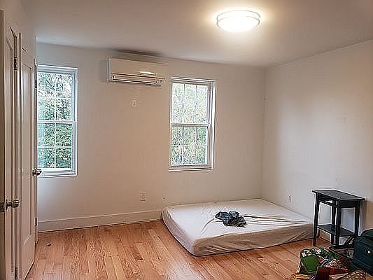 Hello! I have a Modern 3 Bedroom (Two Bedroom plus Office and or small bedroom) The apartment has Two full bathrooms (One bath in Master bedroom) Front large bedroom with Three huge windows with French doors One Small bedroom (full sized) with window and closet One Master bedroom with large windows and King Sized Dishwasher with Kitchen Island Central a/c Laundry in basement Shared Yard for the building Pets ok