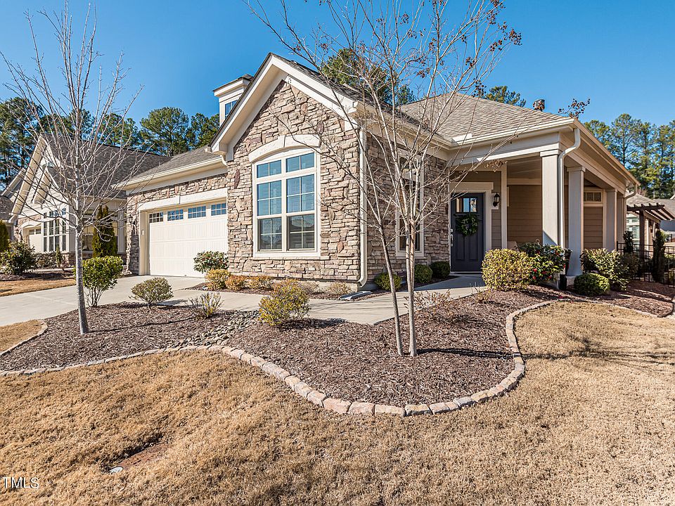 Imagine yourself sitting on the front porch in a comfortable rocker looking out on the impeccably manicured yard. You walk through the front door into the beautifully decorated foyer. Off to the left, you notice the office/den space perfect for enjoying your morning coffee. Step through the arched doorway and immediately notice the high ceilings inviting you in to see more of the open floor plan that flows seamlessly throughout the house. Off to the right, you see the beautiful stone, floor to ceiling fireplace in the living room, that offers plenty of space for entertaining. On your left you see the upgraded and spacious kitchen with stainless steel appliances, granite counter tops, white cabinets and a large navy blue island. Pass through the dining area and continue out to the courtyard to your beautifully landscaped oasis. Notice the charming stone pavers and the softly lit strands of lights to the pergola, creating just the right amount of separation. Back inside, you see the attractive second bedroom and bath, perfect for guests or family. Finally, you arrive at the spacious owner's retreat with trey ceilings and a well-lit sitting area, where you can imagine yourself catching an afternoon nap. Don't forget about the lovely pool, clubhouse and walking trail available for your use in this low maintenance lifestyle community, that caters to the active 55+set. We invite you to come and see this exquisite home and create your own set of memories.
