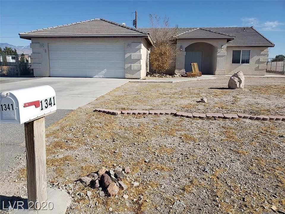 This remarkable 3 bedroom 2 bath home has everything you need. The split floor plan allows for privacy between the primary bedroom and the other two bedrooms in the house. The house common areas are all tile, therefore, easy to clean and maintain. The vaulted ceilings give a sense of space to the home. The open floor plan allows ease of entertainment throughout the kitchen, dining room and great room. Invite guests over to sit by the fireplace and reminisce. This corner lot is centrally located. Almost all commercial areas are within 5 minutes of this home. Located just one block South of Hwy 372, you will have easy access to banks, markets, casinos, and the road to Las Vegas. This home features plenty of storage space with a plethora of cabinets in the kitchen, cabinets in the laundry room, and cabinets in the garage. The finished storage shed in the backyard can easily be converted into an office. This home is affordably priced and definitely is a must see.