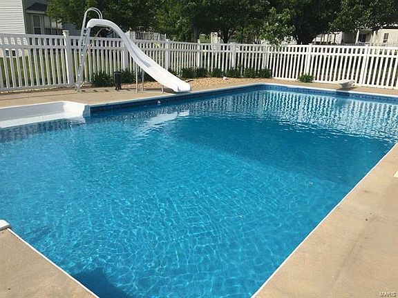 Just in time for summer fun, low maintenance salt system swimming pool with slide and diving board. Located close to highways, shopping & Booming O'fallon. Big 2 story home with a finished walkout basement. Upon entering the front door you can feel the pride of ownership, there's a 2 story foyer flanked by a formal dining rm and office with glass doors. Next, you'll find a spacious great rm with bay window and fireplace, the great rm opens to a large light and bright kitchen/brkfst rm and walks out to huge deck overlooking the pool and backyard. The kitchen has been updated with lots cabinets, counter space, & stainless steel appliances. Upstairs are 4 generous size bedrooms w/ the master bedroom suite boasting 18x18, featuring a big walk-in closet and private luxury bath. The lower level offers possible in-law quarters with a 5th bedroom, family/rec rm and a full bathroom, plus there's still plenty of room for storage too. The LL walks out to a lg patio and into the gated pool area.