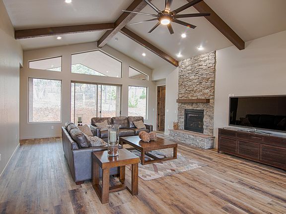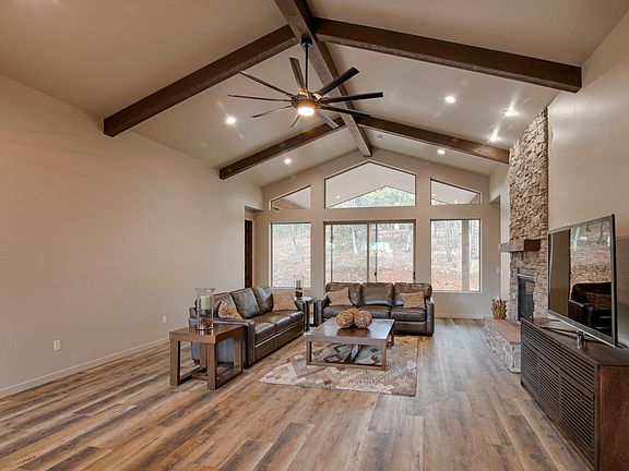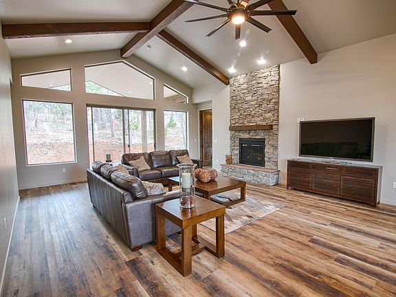 Do you want a BRAND NEW (never occupied) home but also want to move in quickly? This open floor plan offers a great room with floor to ceiling stone fireplace, split bedrooms, custom cabinets, granite counter tops, A/C. The large covered deck extends your living room for great outdoor living and overlooks the tree covered back yard with a stone retaining wall. High end finishes extend to the exterior with an oversized double car garage, maintenance free siding, metal roof, and paver driveway. Located in Snow Creek, which is in a secluded area of Show Low. Snow Creek features the security of a gated community together with improved walking trails throughout extensive open space. It is the fastest growing community in the White Mountains with over 75 new homes constructed in the last 3 years. The development has easy access to all the amenities that the town of Show Low has to offer. Improvements include paved streets, and underground utilities including power, natu- ral gas, cable TV, city water & sewer.
