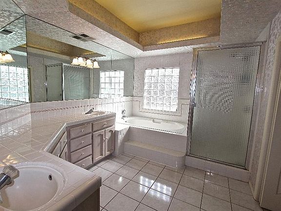 Fantastic custom home in Craycroft Village. Built in 1990 you will find it to be the newest construction in the Craycroft area.Formal landscaping surrounds this attractive home sitting on desirable corner lot.A unique herringbone brick walkway and porch complement the exterior curb appeal.Dramatic foyer with Italian marble and sweeping staircase leads to a huge isolated fourth bedroom,full bath and over sized closet.Downstairs, single level living boasts a spacious master suite and huge bath area with over sized shower.Jacuzzi tub, and uniquely accented ceiling.In addition, two good-sized bedrooms and full bath with separate shower and tub complete the bedroom wing.Living area amenities continue with a formal sitting/living room, dining room,open kitchen with pantry,informal dining,and large great room with unique floor to ceiling herringbone brick corner fireplace.Sun-filled laundry room with corner windows.Pocket doors,surround system throughout. Bath count differs from tax records.