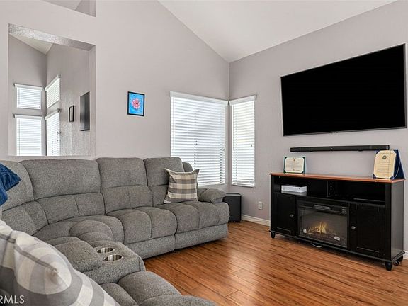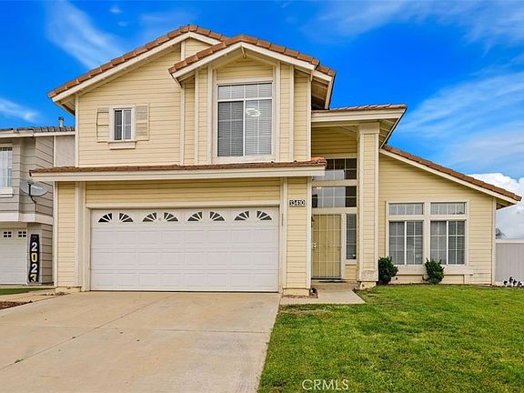 Spectacular unobstructed VIEW from backyard!!! 2-story home located in the Horse Thief Canyon community- offers great curb appeal and stunning city light and mountain views! Check out the ceramic floor entry and wood laminate flooring, new white blinds throughout the home. Formal living and dining areas. The family room features a gas fireplace, slider, adjacent to the kitchen with eating area, breakfast bar counter, and included refrigerator. A half bath completes the 1st floor, and all of the bedrooms are located on the 2nd floor including a hall full bathroom with ceramic tile floors. The primary suite features vaulted ceilings, new flooring and base molding, a walk-in closet, VIEWS of the backyard and mountains, and a private bathroom with dual sinks and walk-in shower. There are also 2 secondary bedrooms and hallway linen storage. Come relax on the exterior patio and enjoy the unobstructed gorgeous views. There is also a new lawn and sprinkler system. This home has a 2-Car Garage with included washer and dryer, and is located not far from Luiseno Elementary School. Also near all of the community conveniences that you will ever need! Amenities include a pool, spa, club house, tennis court, basketball and more! Also, Low property tax, and low HOA fee! New roof and leased solar.