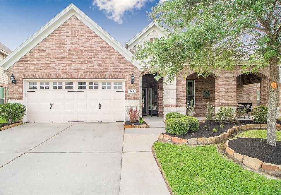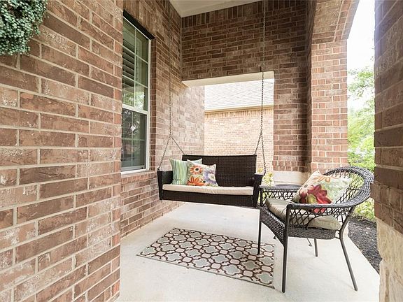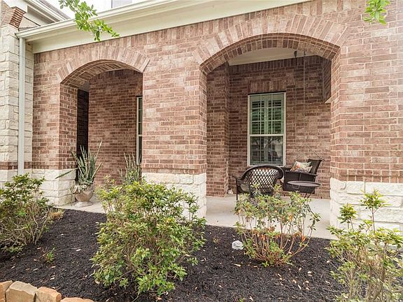 Waters Edge is a beautiful community in NE Houston on the water of Lake Houston. This Pulte home has a beautiful elevation and curb appeal. Stone and brick front and brick on all 4 sides. Across the full front of home is a welcoming front porch with brick arches. This popular 1.5 story floor plan features 4 bedrooms, 3 of which are on the 1st floor and 3/1 bathrooms. Kitchen has quartz countertops, a large island w/breakfast bar, 42" cabinets for storage and a built-in desk area. Leading to the dining area with a country chic chandelier. The family room is open to the kitchen, a gas log fireplace, windows with plantation shutters make this home warm and inviting. Dble doors open to the primary bedroom with room for a king size bed. French doors to the primary bath with a separate tub, large shower with bench and walk in closet. Upstairs a second living area, full bath and bedroom. Beautiful landscaping and privacy with room to put in a pool. This is a great Property!