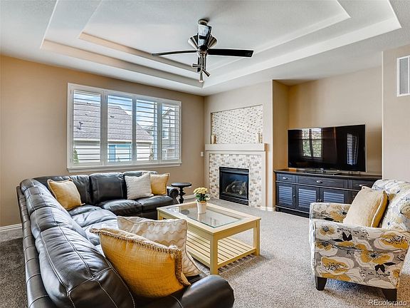 Colorado Dream Home awaits you with this show home quality ranch. Inviting entrance will greet you with an elegant dining enclave for entertaining. Enter through french doors to enjoy your executive style study with modern flooring & ceiling fan. Captivating Great Room with open floor plan, coffered ceiling and sophisticated stone surrounding fire place. Desirable plantation shutters. Stunning Gourmet Kitchen with designer granite counter tops & stone back splash, island, staggered cabinets with crown molding and roll out base drawers. Convenient butlers pantry located between kitchen & dining room to enhance your dining experience. Walk in pantry with custom glass door. Premium Stainless Steel package with newer 4 door style Samsung refrigerator and new Samsung dishwasher. Spacious & delightful kitchen eating area with view of impressive Trex deck, manicured landscaping, covered patio and enticing brand new 7 person Hot Tub/SPA. Newer lush carpet throughout, brand new level 4 impact resistant roof being installed, brand new high efficiency American Standard furnace and brand new exterior paint.