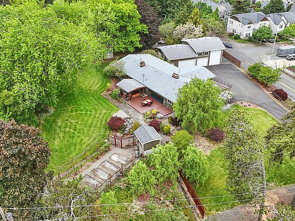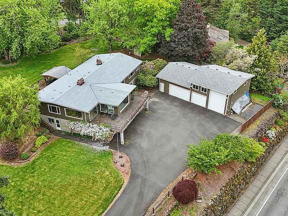 Perched amongst the tree-tops on a private 1 acre lot this midcentury marvel is the pinnacle of Happy Valley living! Offering over 4400sqft of living space, its unique blend of original charm & modern updates sets the tone for tranquil everyday living, intimate gatherings & grand celebrations. Massive picture windows throughout invite light & offer stunning panoramic views. From the main floor entry you’ll flow seamlessly through the living room & formal dining room w/windows on all sides giving the sensation of floating amongst the trees. Glass sliders from the dining room open onto a wrap around patio truly bringing the outdoors in. Living room features a gas fireplace w/Roman brick and wood built-ins enriching the space w/midcentury sophistication. You'll find quality at every turn in the eat-in kitchen from gorgeous custom cabinets, slab quartz countertops & island w/seating to wonderful original details via built-in seating, continuation of the original masonry, a 2nd gas fireplace & original Tappan oven.Enjoy a smooth transition from the kitchen to the outdoor oasis. Picture peaceful mornings w/coffee in hand taking in the calming sounds of the water feature, serene views of the fully fenced & landscaped grounds. Majestic Silver & Japanese maples & lilac are a few highlights. Cue up the grill in the outdoor entertaining space or melt the day away in the hot tub. An enclosed garden features raised beds, concord grapes, blueberries & roses. Daylight lower-level w/separate entrance ideal for multi-generational living featuring a wood stove, full bath & access to a massive craft/flex space. Oversized 2 car garage w/checkerboard flooring is a car enthusiast's dream! Detached 30x50 shop w/concrete floors, plumbed sink, 200 amp independent electrical service, 2 car bay, single car bay & an oversized 13' RV garage door. Other highlights: Dual zone heat w/2furnaces, 2 H20heaters,2 A/C. New roof(2023), Updated Electric panels, Solar panels