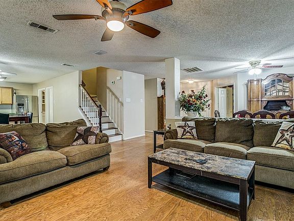 BACK ON THE MARKET! NEW kitchen counter-tops, fresh paint, and fresh landscaping! Spacious 4 bedroom home with lots of custom touches: solid surface counters in island kitchen, wired for surround sound, sprinkler system, ceiling fans, built-ins, hardwood flooring on staircase, walk-in pantry, huge utility with sink & cabinets, office with custom built shelving, bedrooms are all upstairs which makes for a very open floor plan downstairs! All NEW carpet upstairs! Very close to neighborhood park. POOL!! NORTHWEST ISD!!