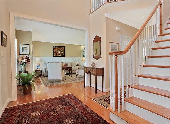 This beautiful home in the highly desirable Kingham section of The Grove is situated on almost an acre of land, loaded with extras and looks like new. With almost 4,000 SF, this spacious home offers 5 bedrooms, 4 1/2 baths, a media room and a finished 3rd floor that can be used as an in-law suite. The formal living room offers a custom built-in bookcase and wainscot throughout. The upgraded kitchen includes tons of custom cabinets and granite counter space, with molded sink and a large eat-in island. The kitchen flows into a large family room and breakfast room, with bay windows. The 2nd floor features 4 bedrooms, 3 full bathrooms, a laundry room and a media room. The master bedroom includes a sitting area with bay windows and large master bath. The 3rd floor is newly refinished and includes hand-scraped hard wood floors and a full bath, complete with marble tiled floors and shower. Extras include: a spacious deck with covered seating area. plantation shutters, neutral custom painted rooms throughout, a security system, electronics closet/pre-wired for surround sound for the family room and irrigation in the front and back yard. Please take the interactive Virtual Tour.