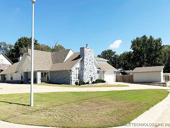 Discover unparalleled elegance and versatility at 13433 S 125th E Ave, a meticulously remodeled 2-family home in the vibrant Broken Arrow area, boasting access to the award-winning Bixby Schools. Perfect for multigenerational living or an in-law suite, this property features two distinct master bedroomsone on each levelboth with their own fireplaces, walk-in closets, and full en-suite baths. Mother-in-law suite on 2nd floor has its own kitchen, dining area, laundry room and living area. The first floor impresses with its formal dining room, a chef’s kitchen with a walk-in pantry, and a living room anchored by a stunning two-story stone fireplace. Three additional bedrooms, two full baths, and an office with a private entrance complete this level. Upstairs, a game room, separate movie theater, and spacious eat-in kitchen provide endless entertainment options. Outside, enjoy the best of both relaxation and recreation with basketball, pickleball courts and expansive covered patio is perfect for lounging. The in-ground pool and pool house offer the ideal backdrop for outdoor fun and BBQ’s to this fully fenced backyard oasis. With a circle drive, two-car garage, and corner lot location, this home has it allspace, style, and convenience! Owner finance available.