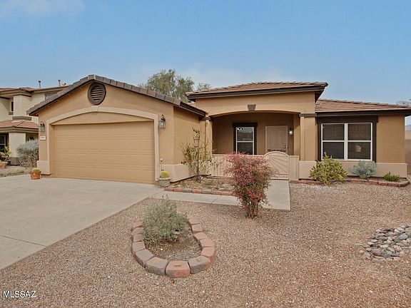Escape to your very own backyard oasis with this stunning Vail home! This ranch-style residence has everything you need for the perfect retreat, boasting mountain views, a 2-car garage, RV gate & desert landscaping. You'll love the spacious living areas, stylish tile floors, and large open den. The open floor plan is perfect for entertaining, & the fully equipped kitchen features Stainless steel appliances, granite tile counters, ample wood cabinetry, and a breakfast bar. The oversized main bedroom features a private bathroom with dual vanities and a walk-in closet. But the real showstopper is the backyard - a true oasis with a covered patio, sparkling pool & spa, all surrounded by lush landscaping and total privacy from neighboring properties. Take advantage of this incredible