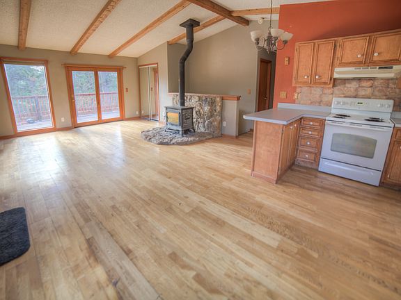 Fabulous 4 bed/2 bath home in Pine on a beautiful flat acre in Pine. Great room with vaulted ceilings, hardwood floors, and Hearthstone wood burning fireplace. Awesome open kitchen/dining area with hardwood floors and built in wine rack. Large family room has Hearthstone gas stove. There is a 4th non-conforming bedroom in the basement. Terrific large wraparound deck. Newer roof & flat/usable lot with gentle driveway and 2 large sheds. Wonderful Mountain Living with easy access to Metro Denver! Gorgeous views with southern exposure in Jefferson County.