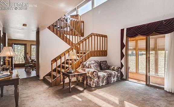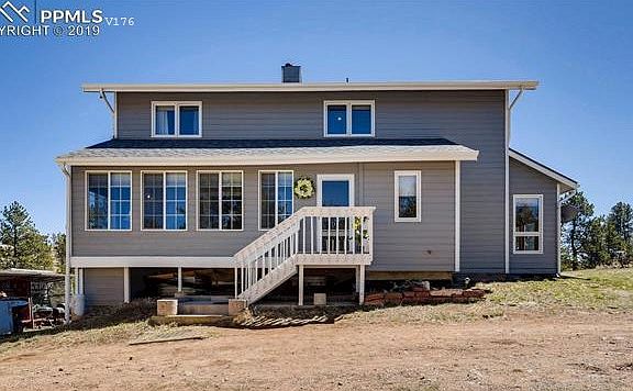 Fabulous five + acres bordering the Pike National Forest zoned for horses! Make this home a lifetime getaway. Only a few minutes from Woodland Park, near Gold Medal fishing and close to miles of hiking trails. New roof and new plumbing lines! Main level boasts enclosed sun porch, great room, large kitchen with wood stove for extra warmth, family room, fabulous walk-in pantry, separate dining room, laundry room and 3/4 bath. Lots of windows throughout for energy saving passive solar affect including tongue/groove solarium. Upper level includes loft area with private deck, Master bedroom with attached bath with its own private deck plus generously sized 2 other bedrooms and full bath. Lower level walk out has huge workshop sure to please the handy person in the family. Exterior features include a level driveway, fenced dog run, storage sheds, fenced garden area and lots of room to explore. Also the school bus stops right out the front door! Plan now to visit this wonderful property!