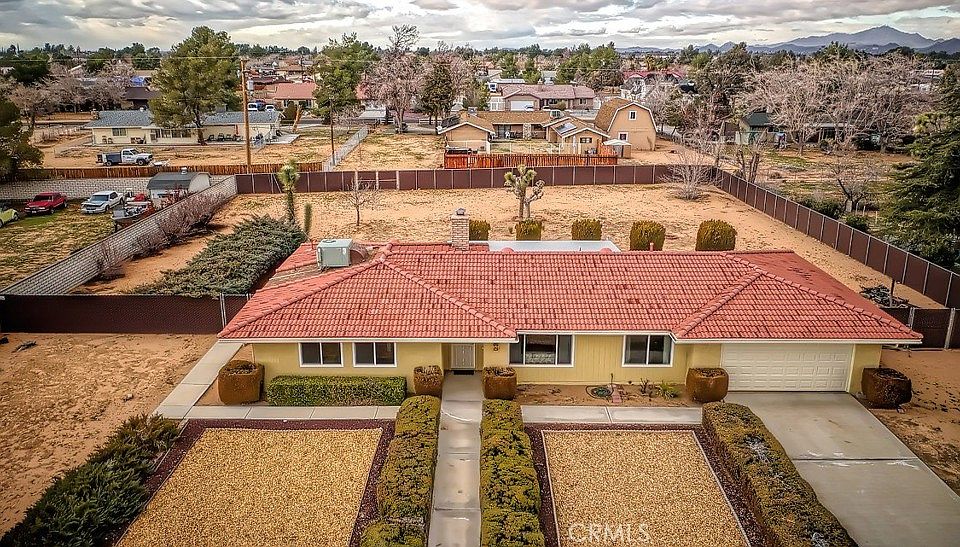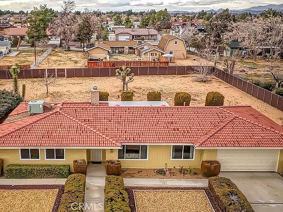 Welcome to this Apple Valley charmer located in a cute, quiet neighborhood and within the highly desirable boundaries of Sitting Bull Elementary. Notable features include a NEW GARAGE DOOR, TILE roof (replaced the shingles), NEW chain link fence with vinyl privacy slats surrounding just over 1/2 acre with RV ACCESS to the rear, newer exterior paint, low maintenance drought-tolerant front landscaping, 2 year NEW ENERGY EFFICIENT WINDOWS, REAR EXTERIOR DOORS and SLIDER, a security door, fully covered rear patio, an A/C that has been replaced, and a septic and leach system that was replaced 4 years ago. Interior features include additional space with an EXTRA ROOM, fully ducted with heat and A/C, located off of the laundry room and garage which could be used as an office, den, craft room, storage room, man-cave/she-shed, or even a 4th bedroom if a closet is added. Enjoy a kitchen with plenty of workspace, storage, and a walk-in pantry, a wood burning fireplace, ceilings that have been renovated with hand-textured stucco, and new roll-up shades on the windows and slider. Washer, dryer, and refrigerator are INCLUDED, making this a perfect home for first-timers!