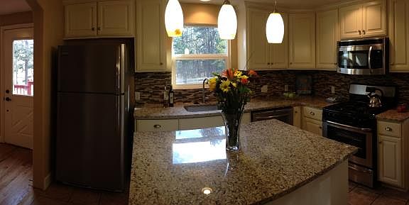 Has gourmet kitchen with slab granite counter tops stainless steel appliances tile floors custom cabinets glass tile back splash large island and walk out to large private deck New furnace and new water heater Hardwood floors in dining room and three bedrooms Family room has new carpet Bathroom has tile floors with glass tile in the shower Main level laundry room Circular driveway and new vinyl windows District 20 schools and home is zoned for horses and domestic animals A rare find in Black Forest