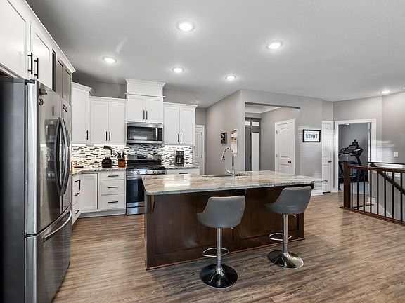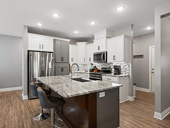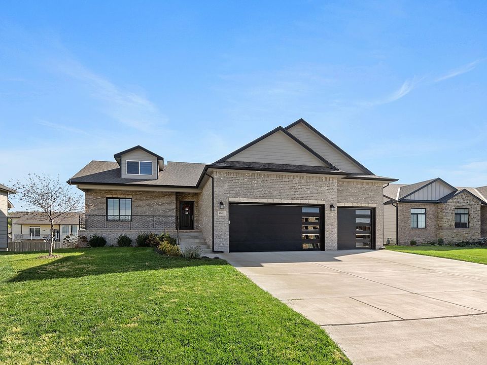 VA assumable loan at 2.875% for eligible veterans! This almost-new 5-bedroom, 3-bath ranch, built in 2021, offers a perfect blend of style and functionality. The inviting front porch welcomes you into an open-concept main living space, bathed in natural light from large windows, with luxury vinyl plank flooring throughout. The living room boasts a gas fireplace with a tile surround, creating a cozy atmosphere. The chef’s kitchen features granite countertops, a stunning tile backsplash, a walk-in pantry, an oversized island with an eating bar and farmhouse sink, and stainless-steel appliances, including a gas range — ideal for hosting and everyday living. (Kitchen refrigerator does not stay.) A main floor laundry with a drop zone as you enter from the garage adds convenience. The split bedroom plan ensures privacy for the primary suite, complete with access to the deck. The spa-like primary bath includes granite countertops, tile floors, double sinks, a stand-alone tiled shower with dual showerheads, extra counter space, and a large walk-in closet. Two additional bedrooms and a hall bath with granite countertops, tile flooring, and a tub/shower combo complete the main level. The finished view-out basement offers a spacious family room perfect for entertaining friends and family with lots of space for a game table, a wet bar with granite counters and a walk-in pantry, plus two additional bedrooms, each with walk-in closets. A third full bath rounds out this expansive lower level. Outside, enjoy a large, covered deck, patio, and raised garden beds with drip lines from the backyard sprinkler system. The convenient East-side setting is close to shopping districts, churches, restaurants and major employers plus ease of reaching Kellogg Ave, K-96 and the Kansas Turnpike for getting anywhere in the greater Wichita area. This home is the perfect blend of modern amenities and thoughtful design plus still has that new home feel! Don’t miss your chance to make it yours today!! Call for your own private showing!!