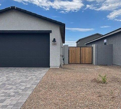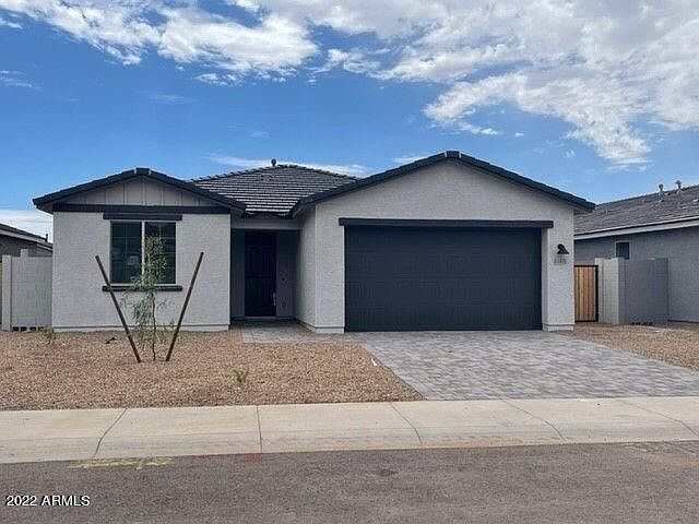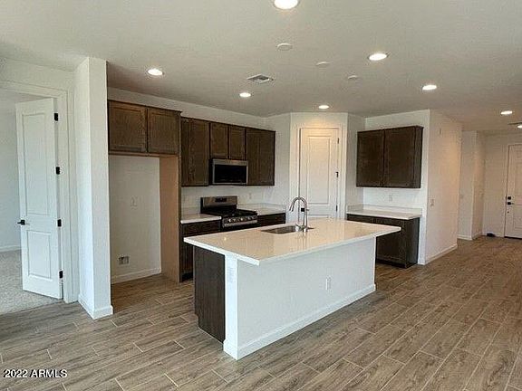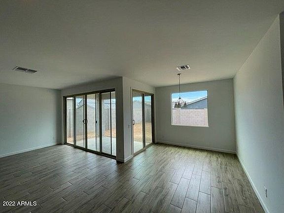 New construction resale home that is move-in ready and never occupied in the Peoria school district! All builder warranties transfer! Features: 4-panel sliding glass door from great room to covered patio and double sliding glass doors from dining to covered patio with large picture window overlooking the rear yard. Double gate at side yard, gas stub and irrigation main line out to backyard, pavered entry, driveway and walkway. Modified master bath - walk-in shower with cultured marble surrounds and clear glass enclosure. Stainless steel appliances including dishwasher, gas range, and microwave. Shaker style cabinets with 42'' uppers and boxed in refrigerator painted white at bathrooms and stained charcoal at kitchen. Quartz countertops at kitchen. 8' interior doors with upgraded black hard are and 4-1/4'' baseboards. Electrical upgrades throughout, including upgraded black vanity lighting, ceiling fan prewires at bedrooms, great room and study and pendant light prewires included at kitchen. Wood-look 8x35 tile throughout, with 18x18 at master bath and upgraded carpet and pad at bedrooms and den.