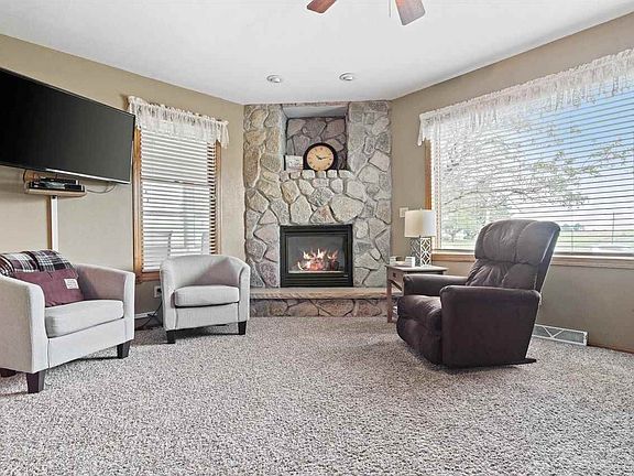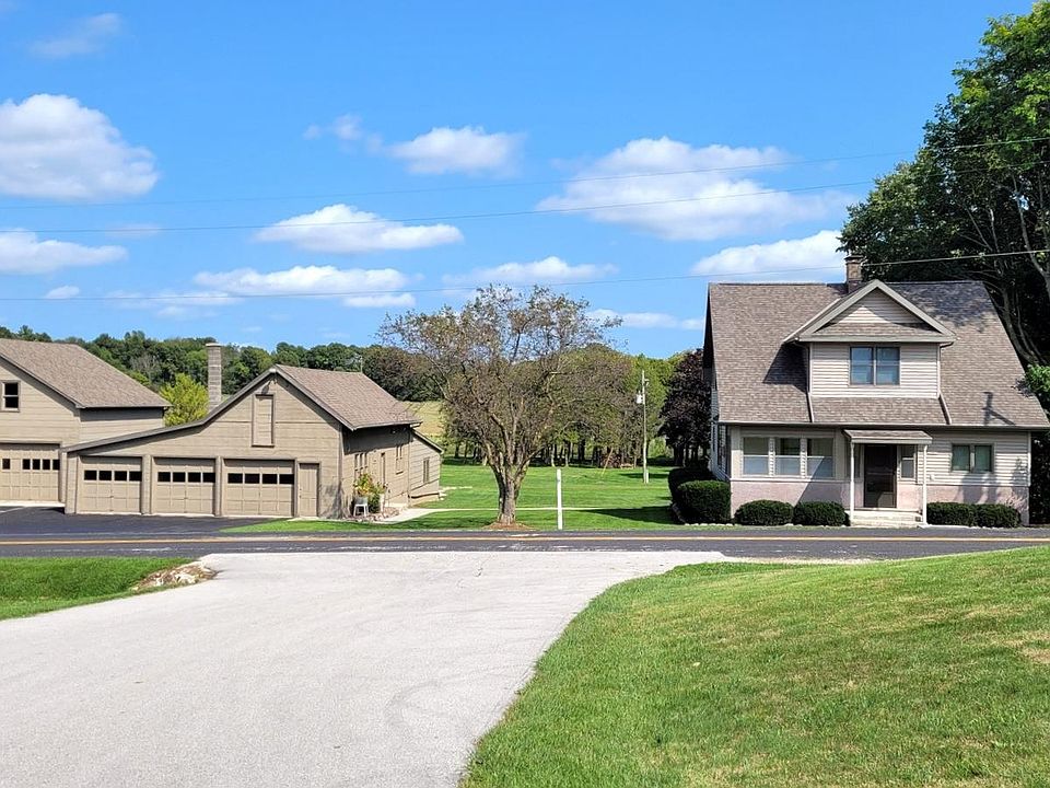 JUST MINUTES TO KIEL & AREA LAKES is where you will find this rural property w/over 2.4 acres. Enjoy 6+ car garages & heated PLUS loft areas & storage galore for all those toys! Home features 3 spacious bedrooms, 1st floor office, living room w/gas FP, hardwood floors, BEAUTIFUL country kitchen w/tons of cabinets & counter space, 1st-floor laundry/mudroom, 1st-floor full bath w/tile shower. You will love the layout. Full basement. Endless updates include; mound; Andersen windows, furnace, roof '07, hot water heater. Well manicured landscaping & much more. Chickens allowed per seller.