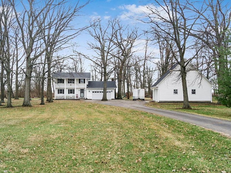 Beautifully renovated piece of heaven! Situated on almost 4 acres this 2 story gem has hardwood floors throughout most of the entry level. Updated kitchen w breakfast bar, custom cabinets, stainless appliances, glass back splash and spacious eat in. Beautiful great room w vaulted ceilings, built ins, wood burning fireplace, new sliding glass door and plenty of natural light. Ceramic tiled bathrooms w new vanities and plumbing fixtures throughout. New light fixtures and hardware througout, Entry level laundry and mud room, spacious master bedroom w double closets. Wood deck, new roof, new tankless water heater, new furnace and AC unit, new gutters and downspouts. Large detached garage equipped w wood burner and 220 elec. w loft space above. Wooded lot, security system.Natural gas. Must see