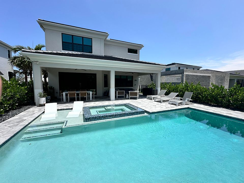 Stunning Newer construction in Palm Beach Gardens, featuring a four-bedroom layout with high-end finishes and modern amenities. This exquisite home includes a two-car garage, plus a dedicated golf cart garage, and is enchanted by large impact windows and elegant coffered ceilings. Inside, you find a spacious kitchen with a panty, ideal for the culinary enthusiasts, and multiple dining areas perfect for entertaining. The home also offers a versatile den office. The private backyard is a personal oasis, boasting a pool, spa, and ample space for relaxation and outdoor activities. Located in the best neighborhood, this property is just minutes away from premier shopping and dining, offering a perfect blend of luxury, convenience, and comfort.