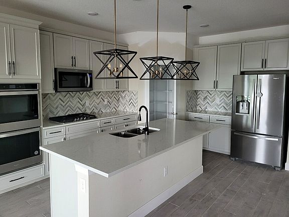 Experience modern luxury in this stunning, newer Colonial home featuring 5 spacious bedrooms, 3 full bathrooms, and 10-foot-high ceilings with crown molding throughout. With 8-foot doors and an open, airy floor plan bathed in natural light, this home offers elegance and comfort in every corner. The heart of the home is the meticulously designed kitchen, boasting quartz countertops, neutral cabinets with pullouts including pantry and spice racks and upgraded stainless steel appliances, including a gas stove. A large central island provides ample workspace, while the extended counter space includes a dry bar The kitchen's tray ceiling with an upgraded ceiling fan adds a touch of sophistication. Retreat to the luxurious primary suite, featuring his-and-her custom built-in closets, dual vanities, and a large walk-in shower with an upgraded rain shower faucet. The guest suite offers a spacious bedroom with a new ceiling fan and a large reach-in closet, accompanied by a guest bath with a roomy walk-in shower. Additional highlights include a large open loft, a laundry area with a full-size washer, dryer, and storage, and a 2-car garage. Hurricane shutters and pocketing glass sliders enhance the home's functionality and style. Step outside to the covered screened lanai, where peaceful water views create the perfect backdrop for relaxation. Located in a community with top-rated schools and convenient access to shopping, dining, and major roadways, this home combines modern luxury with everyday convenience. Don't miss this rare opportunity call today to schedule your private showing! Renter pays for all the utilities.