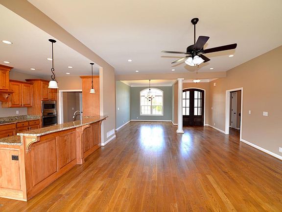 Beautiful 3BR, 2BA BRAND NEW RANCH situation on gorgeous corner lot. This fantastic home features an open eat in kitchen w/granite, stainless steel appliances, raised breakfast bar, & maple cabinets, adjoining great room w/corner fireplace w/granite, 1st floor master suite with tray ceiling, master bath w/ gorgeous mosaic tile, separate shower, Jacuzzi, walk in closet, & dual granite sinks, two other spacious bedrooms, additional 1st floor bath w/dual granite sinks, 1st floor laundry w/sink & cabinets, & more! So many nice features & upgrades including hardwood throughout most of the 1st floor, upgraded fixtures, & energy efficient. The outside boasts a deck, flat rear yard, side entry garage w/large pad, irrigation system & more! Don't miss!