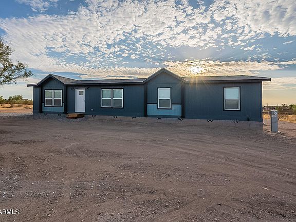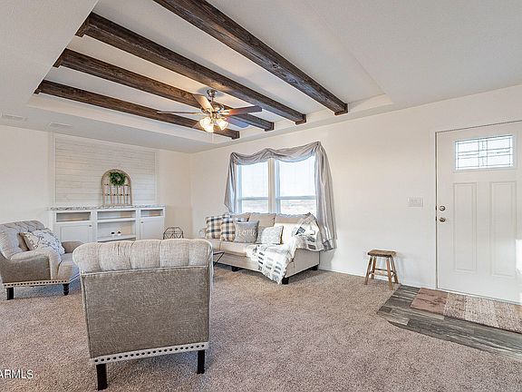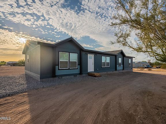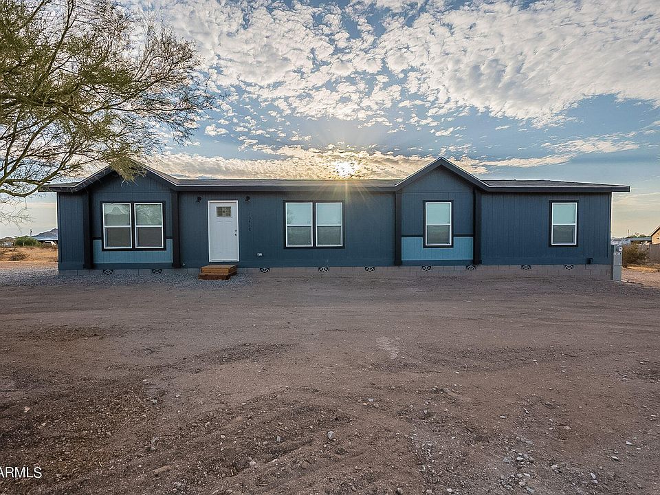 You will not want to miss this one! Brand new farm style 3 bedroom, 2 full bathrooms on 1.1 acres of horse property. This home has all the extras that make a house a home. Located on the edge of Rainbow Valley with vacant State Land across the street and nothing to block the beautiful mountain views. This model is an open floor plan with a bonus room, a spacious kitchen, a dining area and a large island with more than expected storage cabinets and drawer space. Pendant lights above the island, farm sink and coffered ceilings with wood beams. The primary bedroom has barn doors leading into a bathroom with an oversized shower, large vanity with double sinks, linen closet, private lavy room and a large walk in closet. The great room is carpeted and has coffered ceilings with wood beams and faces the mountain view There are rolled countertops and backsplash throughout. Guest bathroom has double sinks, wood floating shelves, added window and shower/bath combo. Comes complete with stove, refrigerator, microwave, dishwasher, garbage disposal, washer, dryer and an upgraded cabinet package. Ceiling fans in every room for comfort. Touch screen programmable thermostat that allows you to manege your heating and cooling with your phone. The exterior has added hose bibs and electrical outlets. This house comes with structural warranty and warranty on home set up. If you're looking for some peace of mind and want some open space, this is the home for you.