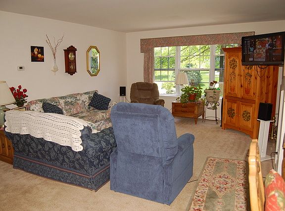 Light and bright ranch home, with large sun room plus a patio. Private master bath with Jacuzzi and separate shower. Open concept living room and dinging room includes cozy gas log fireplace. Large eat in kitchen with all appliances. Home is in great condition and includes a 13 month home warranty. GATED ADULT 55+COMMUNITY W/RESORT LIFESTYLE LIVING W/ITS CLUB CARILLON, POOLS & MANY SCHEDULED ACTIVITIES TO ENJOY