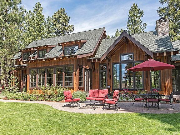 Welcome to the perfect get-a-way in Black Butte Ranch. This stunning lodge style home with timeless architecture is 4225 square feet of comfort and warmth that nestles itself into the surrounding mountain tranquility. Designed by George Hara and built by Gregg Geser this home has been owned and loved by one owner and has never been rented. The setting is spectacular, sitting on nearly an acre of wooded beauty with the South Sister Mountain right in view as you enter the front door. Soaring wood and beam ceilings and huge Pella windows give tons of natural light in this delightful home. A dream kitchen with high-end appliances, limestone counters, hidden pantry, 2 dishwashers and butlers pantry/bar area make it perfect for entertaining. There are gathering spaces for everyone in this home starting with a huge two-sided fireplace that flanks the living room and a more private sun room. There is an eating nook with windows galore and upstairs there is a TV room or play area – you choose. The master bedroom has it’s own sitting area with stone fireplace when you need your own private retreat. All the bedrooms in this amazing home are en suite and gorgeous so that your guests can visit in comfort. The finishes and built-ins are numerous and extensive. You don’t want to miss this amazing opportunity in Black Butte Ranch.