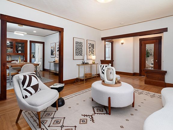 Welcome to a charming Craftsman home offering a well-appointed living space. This property features 2 bedrooms, and 1 updated bathroom, making it an ideal choice for those seeking comfort and style. Upon entering, you are greeted by a cozy living room with a fireplace, perfect for relaxing evenings. Adjacent to the living room is a formal dining room, providing an elegant space for entertainment. The updated kitchen and a convenient breakfast nook, are ideal for casual dining. The home has undergone significant updates, including a new roof, windows, and modern plumbing and electrical systems. The tankless water heater ensures efficiency. The bathroom has been tastefully updated to meet contemporary standards. Outdoor features include a welcoming front porch and a back porch, offering additional space for relaxation and outdoor activities. The low-maintenance landscape ensures you can enjoy the outdoor areas with minimal upkeep. A detached garage and a driveway that can park up to 4 additional vehicles. This property is accessible to local amenities and public transportation. Don't miss the opportunity to own this meticulously updated Craftsman home. Contact us today to schedule. Agent can go and show.