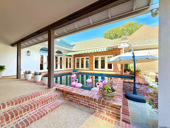 Just Minutes from LSU! Discover this exceptional property situated in a prestigious and established subdivision, just a 15-minute drive to LSU campus. This home offers a perfect blend of luxury, comfort, and outdoor living, making it an ideal retreat for families and professionals alike. Enjoy a true New Orleans-style courtyard crafted by Guy Oliver, featuring an inviting saltwater pool and relaxing hot tub. The courtyard includes two seating areas, a charming fountain, and a covered pergola, perfect for entertaining or tranquil evenings. Privacy and security are paramount with a 12-foot vinyl fence, complemented by a retractable Durasol Elite Awning with motorized operation, all designed by Eduardo Jenkins. The modern chef’s kitchen boasts custom cabinetry, granite countertops, stainless steel appliances, a spacious island, and a stylish glass backsplash. A cozy keeping area with a gas fireplace provides a warm gathering spot. The home’s versatile layout includes an interchangeable dining room, media room, and office area to suit your lifestyle. The expansive master bedroom offers stunning views of Walden Pond, creating a serene retreat. The spa-like master bath, designed with Greek Revival architecture, features double vanities, a soaking tub overlooking the rose garden, a large walk-in shower, and his & her closets by Closets by Design. The home features beautiful wood floors and porcelain tiles throughout the lower level, along with a media room equipped with Hunter Douglas cellular shades and picturesque views of Walden Pond. For added comfort and security, it has zoned air conditioning units and a whole-home Generac generator. Recent updates include a new roof in 2020, fresh exterior paint in 2023, updated gutters with leaf guards, and a new drainage system to keep the yard dry and well-maintained. The garage boasts epoxy flooring, new storage cabinets, a dedicated workshop room, and a new garage door, combining both functionality and style.