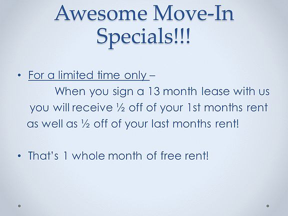 • Included: Dishwasher, Freezer, Garbage disposal, Microwave, Range / Oven, Refrigerator