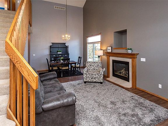 This one and a half story has over 2600 Sq ft of finish and 26 ft soaring ceilings! Don't miss this 4 bedroom, 4 bath home. Master bedroom and laundry are on the main floor for easy living. The huge master with vaulted ceiling has a ensuite with double vanity, double closets and jet tub for relaxing after a long day. Open kitchen with engineered hardwood floors hosts plenty of cupboards. The main floor is a open concept and includes a dining room, family room, master bedroom, laundry and guest bathroom. On the second level you will find two large bedrooms, full bathroom. The professionally finished lower level has a family room, bedroom with egress and bathroom with a shower. Plenty of room for storage. With tons of updates that include New Roof 2019, Furnace and AC 2015, Water Heater 2017. Large back yard with room for a garden and hosts a deck for entertaining! Next to the home is city green space that will never be built on and a small stream. Carpet Allowance also offered!