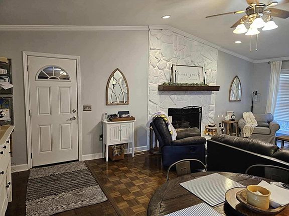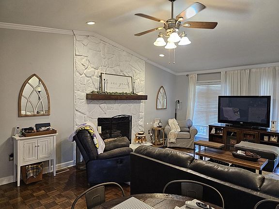 This beautiful home is a perfect blend of modern and classic styles, with solid wood cabinets and quartz countertops that offer a sleek and clean look. The wooden board and batten siding adds a touch of rustic charm to the exterior of the home, while the paved driveway and fenced yard provide convenience. Inside, the parquet flooring gives a welcoming feeling to the space, while the high ceiling adds to the sense of spaciousness. The gas log fireplace is perfect for cozy evenings at home, and all kitchen appliances stay. The 2 car garage with a door opener to the patio is a great feature that adds to the functionality of the home. The pool, measuring 4x18 round, and hot tub both installed in 2021, offer a perfect spot for outdoor relaxation. The remodeled master bathroom in 2018 is a stunning feature. The 2015 heat pump and new tilt windows ensure energy efficiency. The metal roof installed in 2020 and new gutters in 2021 provide durability and protection from the elements.