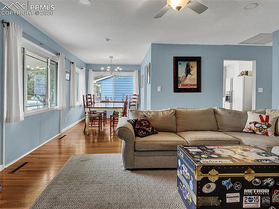 Enjoy peaceful, main level living at its best in this well cared for and upgraded home in an established, quiet neighborhood! An inviting covered front porch with swing welcome you into this lovely mid-century home. The spacious living room boasts original built-ins and is open to the dining area which provides both east and south facing windows providing an abundance of natural light! You will love all of the solid surface flooring throughout including hardwood in the living, dining, and bedrooms, and tile in the kitchen and bathroom! The kitchen will delight with its pleasing color palette, ample cabinet space, and walkout onto a paved patio perfect for outdoor entertaining. The spacious 12x25 master bedroom will impress with a newly upgraded closet system in the open dressing area. Enjoy the beautiful outdoor living space as well with a fully fenced backyard w/ lush landscaping, new retaining wall, patios, and extra parking spaces in the front.