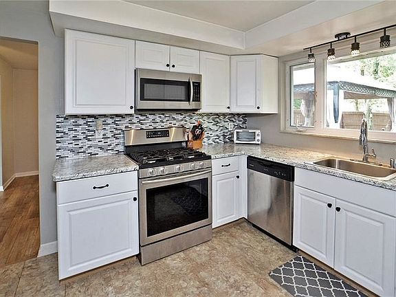 Stylish, Sharp Contemporary! Fabulous large private, fenced in back yard with deck and Gazebo. Large window with great views front and back. Newer kitchen with stainless steel appliances including new gas line to oven.Updates in both bath rooms. New luxury plank flooring first floor and family room.